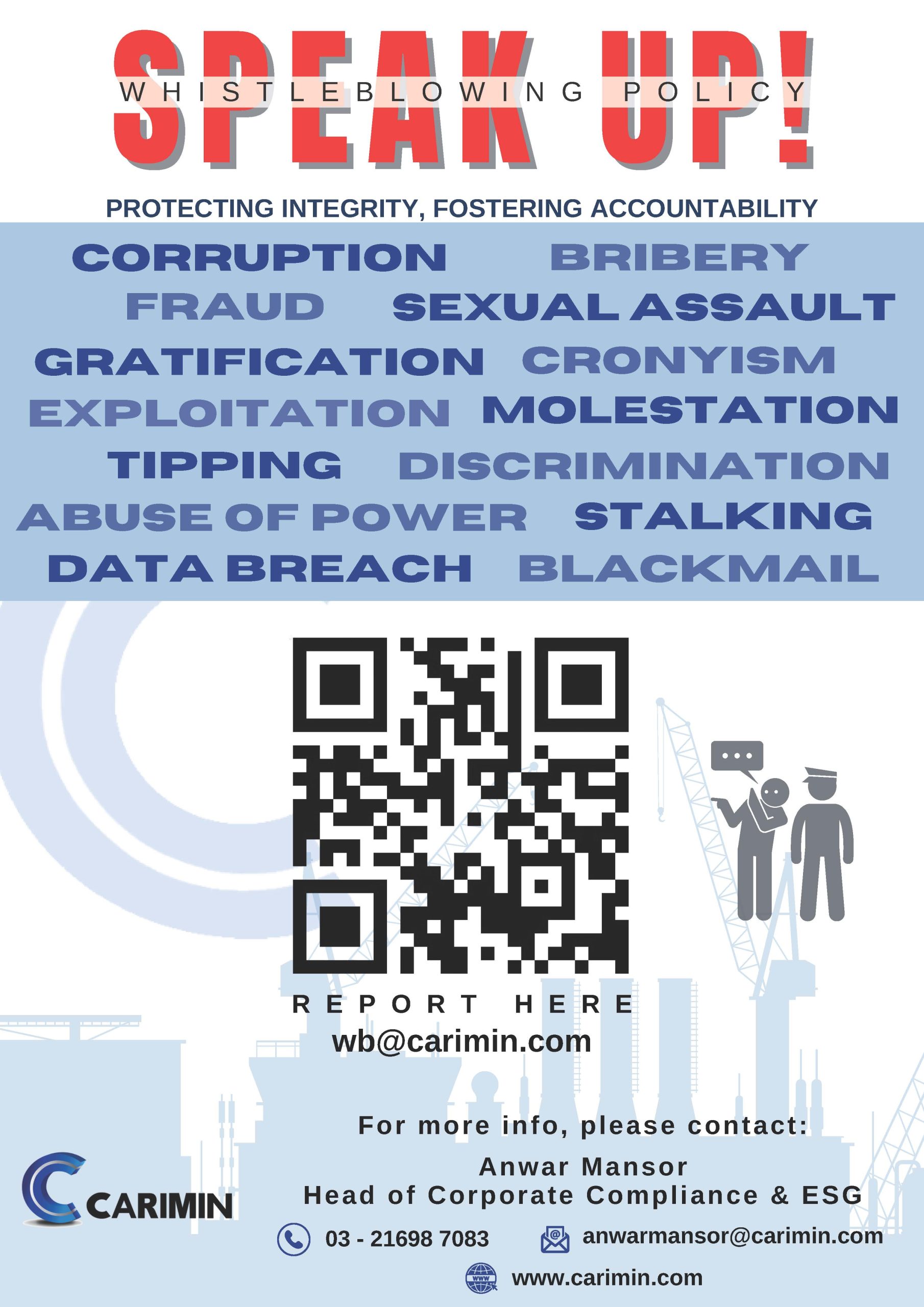 At CARIMIN, we uphold the highest standards of ethics and governance. Our Speak Up channel ensures employees and stakeholders can confidently report concerns, fostering a culture of transparency, accountability, and trust across our organisation.
